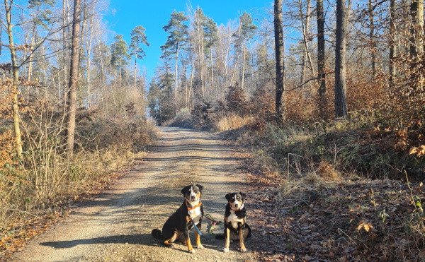 ![]() Pepper auf einem gemeinsamen Spaziergang mit Trixie. ![]() Nuala am Försterrain |